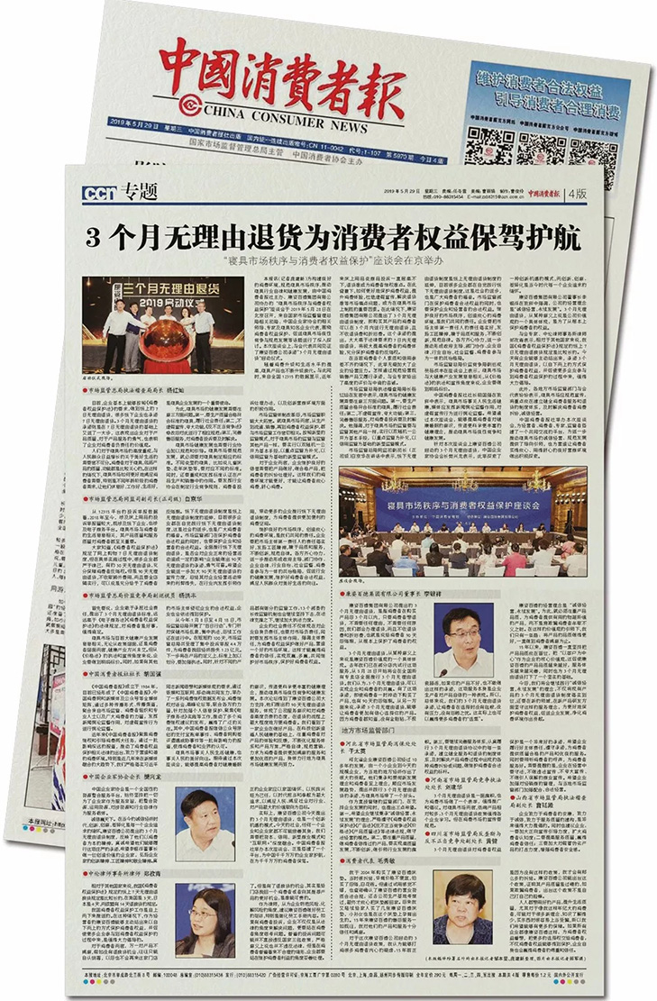 中國消費者報訊(xun) 為(wei)構建良好的消(xiao)(xiao)費(fei)環境,規范寢具(ju)(ju)市(shi)場(chang)秩序,推動寢具(ju)(ju)行業自律和健康發展,由中國(guo)消(xiao)(xiao)費(fei)者(zhe)報社主辦(ban)(ban)、康姿(zi)百(bai)德(de)集團(tuan)有限公司(si)(si)(si)協(xie)(xie)辦(ban)(ban)的“寢具(ju)(ju)市(shi)場(chang)秩序與消(xiao)(xiao)費(fei)者(zhe)權益保(bao)(bao)護”座談會(hui)于2019年5月28日在(zai)北京召開(kai),來自國(guo)家(jia)(jia)市(shi)場(chang)監督(du)管(guan)理總局(ju)相關司(si)(si)(si)局(ju)、中國(guo)企(qi)業家(jia)(jia)協(xie)(xie)會(hui)的相關領導、專家(jia)(jia)及寢具(ju)(ju)知名(ming)企(qi)業代表,圍繞消(xiao)(xiao)費(fei)者(zhe)權益保(bao)(bao)護、促(cu)進(jin)寢具(ju)(ju)市(shi)場(chang)良性競爭與規范發展等話(hua)題進(jin)行了深入(ru)探討(tao)。本次座談會(hui)上,與會(hui)代表共(gong)同見(jian)證了康姿(zi)百(bai)德(de)公司(si)(si)(si)承(cheng)諾“3個月無理由退貨”啟動儀式。