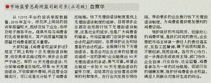 大家知道,《消費者權益保護法》規定了網上購物7日無理由退貨制度,但在具體實施過程中,很多企業都嚴于律己,有的30天無理由退貨,充分保障消費者反悔權。但是90天無理由退貨,不收取額外費用,而且要全店鋪實行,可以說是充分給予了消費者反悔期。線下無理由退貨制度是線上無理由退貨制度的延伸,目前很多企業都在自覺踐行線下無理由退貨制度,這是社會的進步,也是廣大消費者的福音。市場監管部門在保護消費者合法權益的同時,也要保護企業和經營者的合法權益。全面推行線下無理由退貨,是否會對企業正常的經營活動造成一定的影響?企業能做出90天無理由退貨的承諾,勇氣可嘉。希望企業能進一步加大90天無理由退貨的宣傳力度,總結其對企業經營活動帶來的利弊得失,在行業內發揮引領作用,帶動更多的企業推行線下無理由退貨制度,為消費者提供更加便利的消費空間。