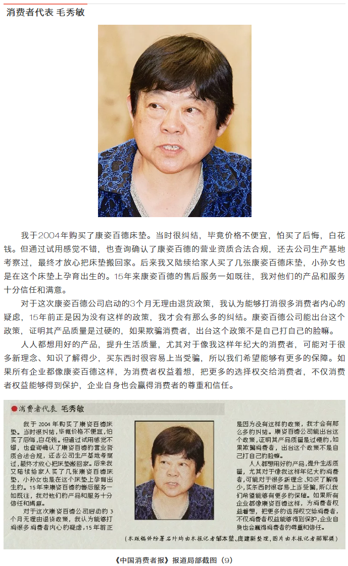 我國消費者權益保護工作是自上而下來推進的。在這種情況下,作為經營者的康姿百德能夠主動站出來以自下而上的方式保護消費者權益,并促使更多企業參與到消費者權益保護的過程中來,是值得大力倡導的。